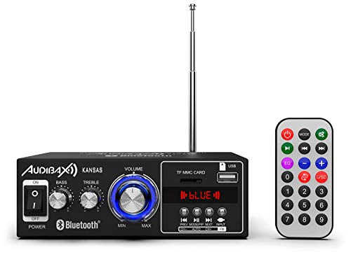 Audibax Kansas - Amplificateur Audio HiFi - Connexion Bluetooth - Puissance 40W + 40W - Entrées Microphone, SD et USB - Amplificateur HiFi Stéréo avec Lecteur MP3 et Radio FM