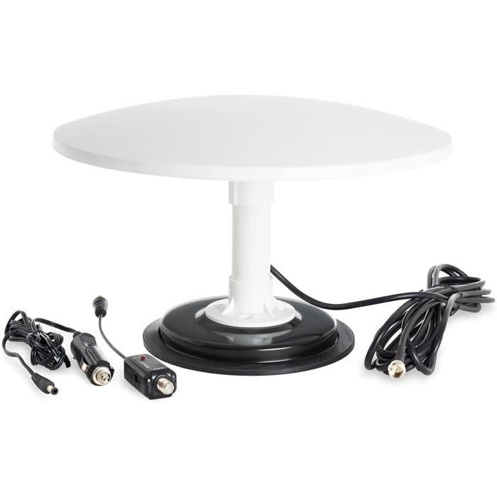 Kuma Cosmos Amplificateur Antenne Puissant TV TNT – d'Antenne Extérieure Câble Télévision HD pour Campeur Caravane Camion Bateau – Antenna Télé HDTV Omnidirectionnelle Portable Base Aimant – Blanche