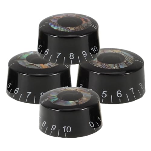 VICASKY Lot de 4 Boutons de Volume Noirs en Caoutchouc avec Incrustation Nacre D'ormeau, Capuchons Ronds pour Amplificateur et Guitare, Contrôle Précis du Son, Accessoires pour Guitare