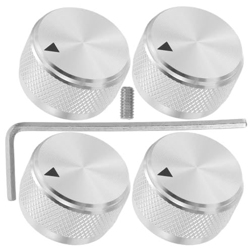 Homoyoyo Boutons de Contrôle du Volume Guitare Argentés 6mm, Lot de 4 Set de Boutons en Métal Moletés Antidérapants, Compatibles Amplificateur et Système Audio, Réglage Précis du Son