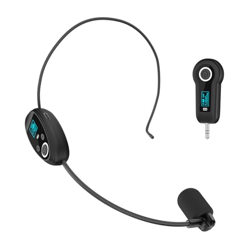LICAEVEY Microphone Casque sans Fil 2,4 G pour Guide Touristique D'enseignement du Fitness Haut-Parleur Amplificateur Vocal, Micro Portatif à Oreille porté par la Tête UHF avec Prise 3,5 (1 à 1)