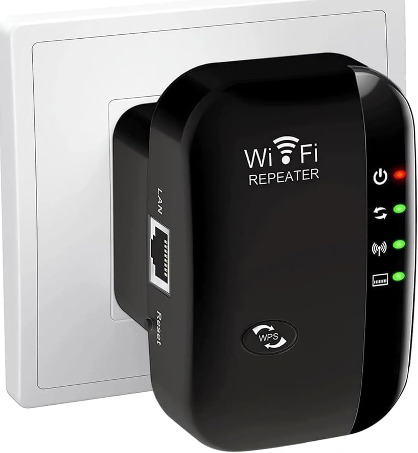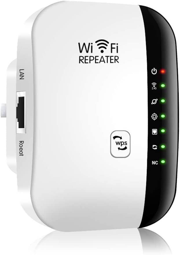 Repeteur WiFi 2.4 GHz, Amplificateur Wi-FI 300Mbp/s 360° Couverture, Repeteur WiFi Puissant avec Port Ethernet et Câble RJ-45 Compatible avec Tous Wi-FI Appareils