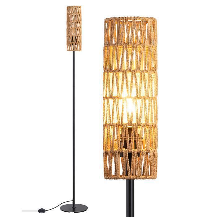 EDISHINE Lampadaire sur Pied Salon avec E27 Ampoule LED 2700K Abat-jour en Corde Tissée Interrupteur à Pédale 165 cm