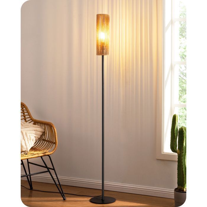 EDISHINE Lampadaire sur Pied Salon avec E27 Ampoule LED de 2700K Lumière Chaude et Abat-jour en Corde Tissée, Interrupteur à Pédale, Lampe sur Pied Moderne pour Salon, Chambre, Bureau, 165 cm