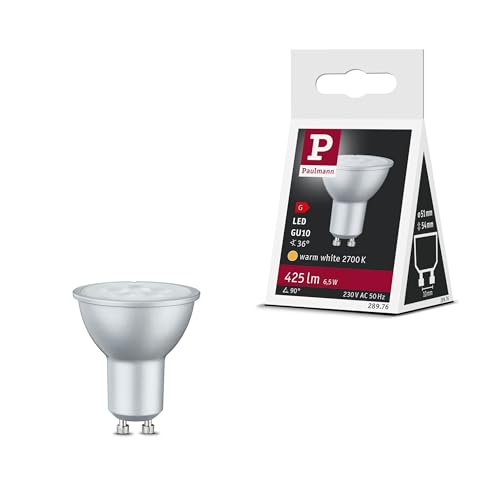 Paulmann 28976 Standard 230V réflecteur LED GU10 230V Pack de 1 6,5W 425lm 51mm Alu plastique 2700K - Ampoule Blanc chaud, Aluminium