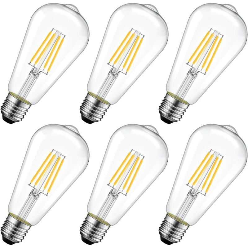 Lot de 6 ampoules LED à filament E27 ST64 8 W équivalent à une ampoule rétro Edison à incandescence 60 W 806 lm 2700 K blanc chaud non dimmable