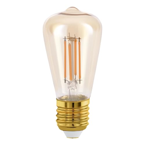 Eglo Lampe LED E27 forme de piston, ampoule Edison à incandescence, éclairage vintage et rétro, 4 watts (correspond à 26 watts), 270 lumens, blanc chaud, ambré, 2200 Kelvin, ST48, Ø 4,8 cm