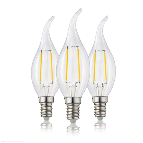 hellum Lot de 3 ampoules LED E14, forme bougie, ampoule LED E14 à vent doux, blanc chaud, 250 lumens, ampoule 2,5 W, équivaut à une ampoule à incandescence de 25 W, 2700 K, clair 207309