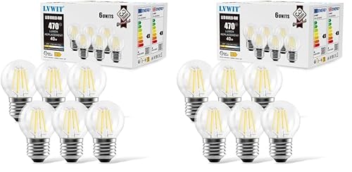 LVWIT 4W Ampoule LED Filament E27 G45, Equivalent à Ampoule Incandescence 40W, 470Lm 2700K Blanc Chaud, Ampoule Edison Vintage, Non Dimmable, Lot de 6