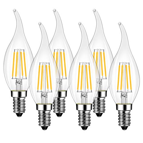LVWIT 7W Ampoule LED E14 à Filament, LED ampoule 1055 Lumen, Equivalent à Ampoule Incandescence 75W, Bougie Forme C35 Rétro, 2700K Blanc Chaud, Non-dimmable, Paquet de 6