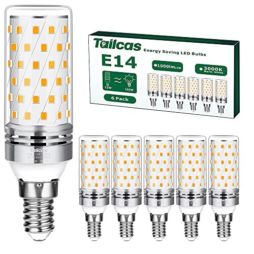 Tailcas Ampoule E14 Led Blanc Chaud, 12W (Équivalent Halogène 100W) Ampoules Culot Edison à vis E14 3000K 1000LM Non-Dimmable Sans Scintillement AC 220-240V pour, Lustres, Lampes de Chevet (Lot de 6)