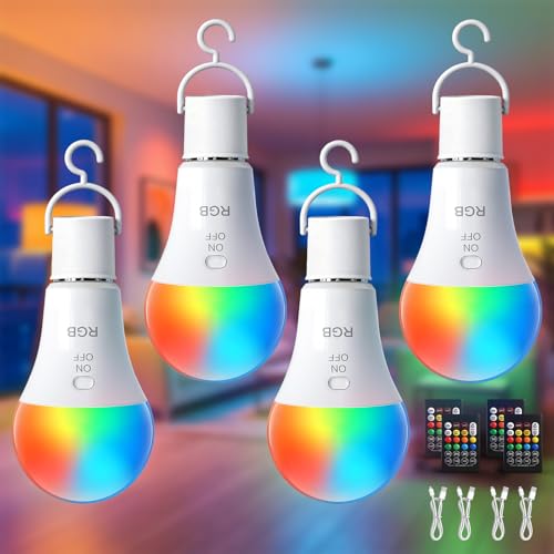 TaoFiaCo E27 RGB Ampoule Rechargeable avec Telecommande - Batterie Ampoule sans Electricite RGB Dimmable USB 7W Contrôle des Boutons Lot de 4