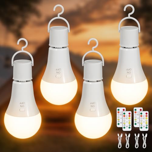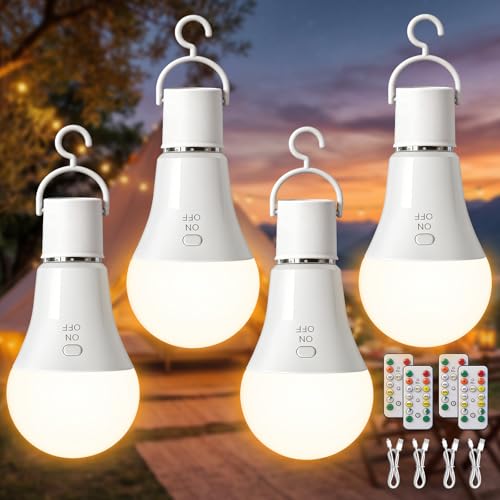 Kimjo Ampoule Rechargeable avec Telecommande USB 7W - E27 Ampoules sans Electricite 3 Couleur Dimmable - Ampoule sur Batterie Timing De Secours, 4 Pack