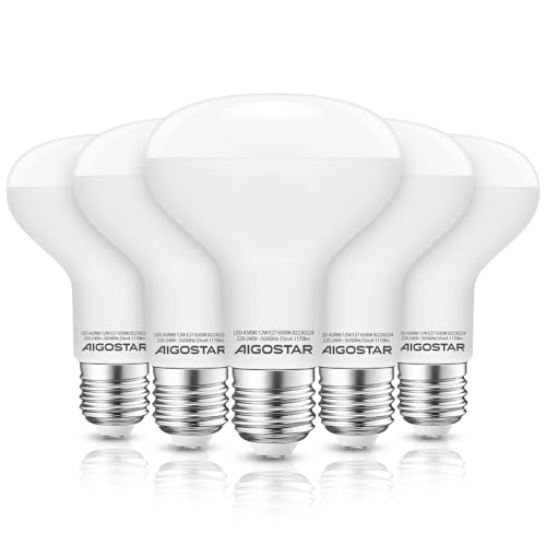 Aigostar Réflecteur Ampoule LED E27 12W Blanc froid 6500K, R80 LED Ampoules,1170Lm, Equivalente à 81W Ampoules Incandescentes, Non-Dimmable, Lot de 5
