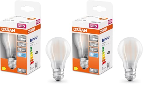 OSRAM LED BASE Classic A100, ampoules LED à filament dépoli en verre pour culot E27, forme ampoule, blanc froid (4000K), 1521 lumen, remplace les ampoules classiques de 100W, boîte de 3