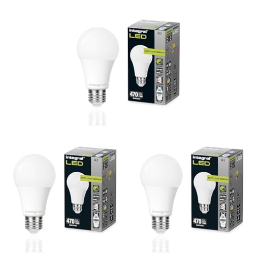 Integral Ampoule LED GLS E27 non-dimmable à double capteur crépusculaire - Blanc froid 4000K, 470lm, 4,8W (équivalent 40W) - Basse consommation et idéale pour l'extérieur (Lot de 3)