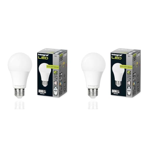 Integral Ampoule LED GLS E27 non-dimmable à double capteur crépusculaire - Blanc froid 4000K, 806lm, 8W (équivalent 60W) - Basse consommation et idéale pour l'extérieur (Lot de 2)