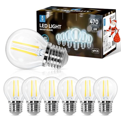 Aigostar Ampoule LED Filament E27 Blanc Froid 6500K,470LM,4W Equivalent à Ampoule Incandescente 40W,G45,Angle de 360º, Non-dimmable, Lot de 6
