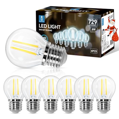Aigostar Ampoule E27 LED Filament blanc froid 6500K, 729LM,6W Equivalent à Ampoule Incandescente 55W,Angle de 360º,G45,Non-dimmable, Lot de 6