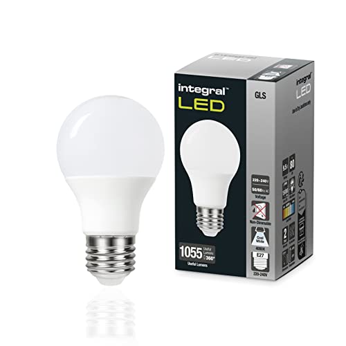 Integral Ampoule LED E27 2 PACK GLS A60 Blanc froid 4000K, 1055LM, 9.5W (équivalent à 75W) non dimmable et dépolie - Efficace en énergie et idéale pour les appliques et lampes dans les salons