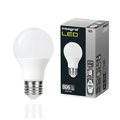 Integral Ampoule LED E27 4 PACK GLS A60 Blanc froid 4000K, 806LM, 8.8W (équivalent à 60W) Non-Dimmable & Dépolie - Efficace en énergie et idéale pour les appliques et lampes dans les salons