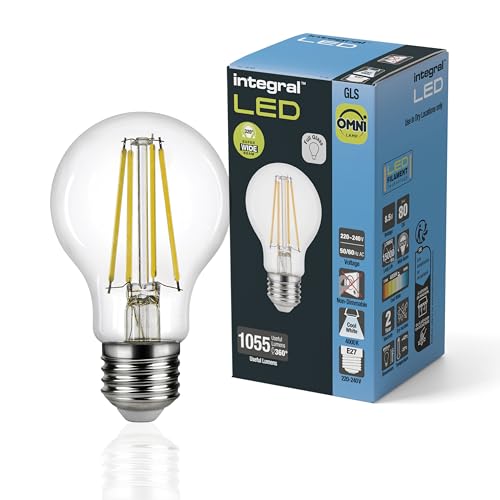 Integral Ampoule LED E27 GLS A60 Omni-filament Blanc Froid 4000K, 1055LM, 8.5W (équivalent à 75W) non dimmable - Paquet de 2 - Efficace en énergie, Pour les chambres, les couloirs et les salons