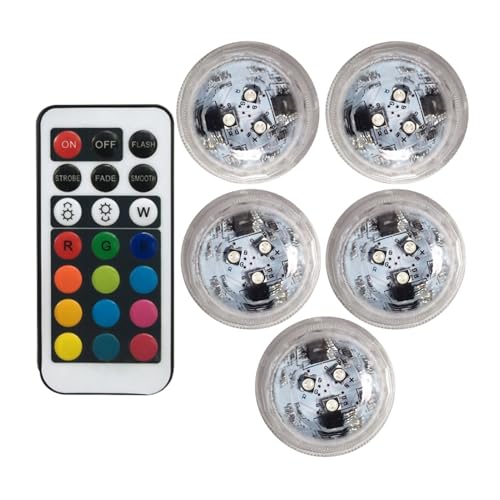 Petite lumière LED submersible – Mini lampe étanche, ampoule à changement de couleur, éclairage télécommandé, luminaire alimenté par batterie, lueur décorative compacte | Idéal pour aquarium, vase, aq