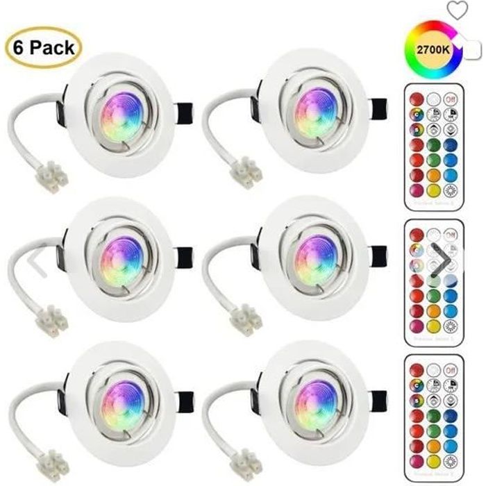 LED Spots Encastrables Orientable GU10 Ampoule RGB Couleur Changement Lampe Blanc Chaud 6W de plafond du Jour Plafonnie(6er Set)