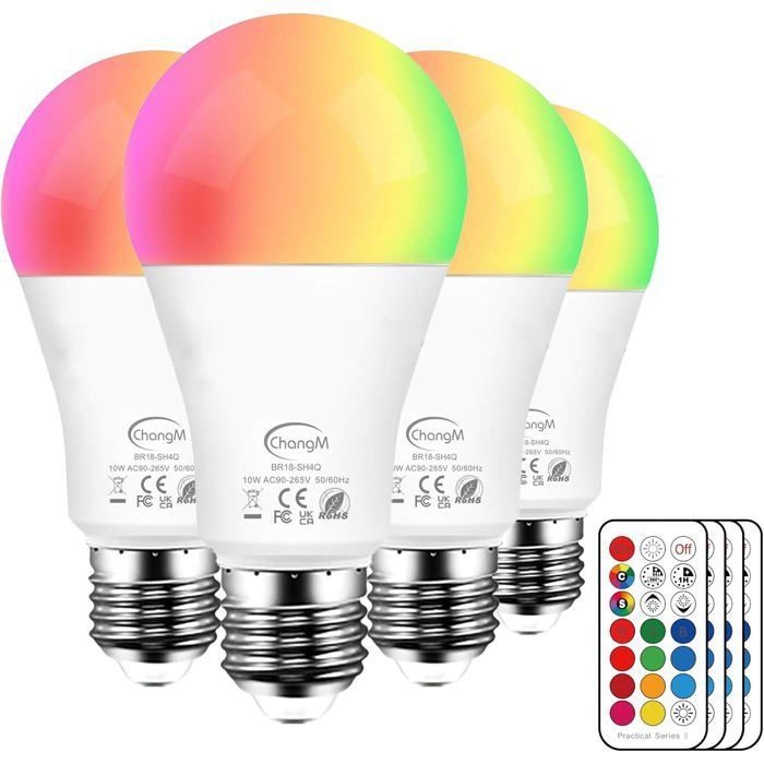 E27 12 Couleurs LED RGBW Ampoule Changement de Couleur Télécommande Timing et Dimmable RGB+Blanc 10W (Lot de 4)