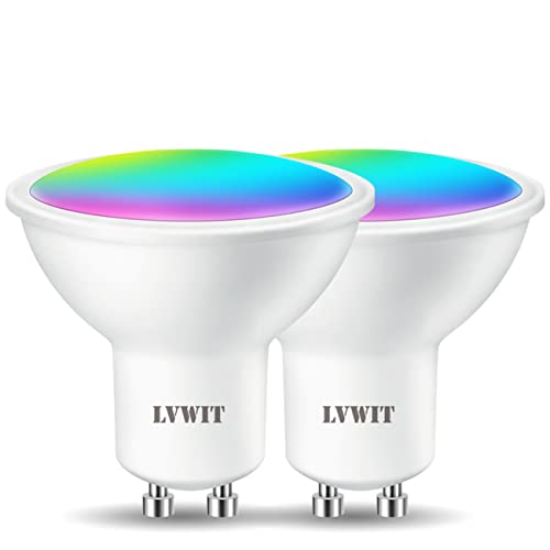 LVWIT GU10 Ampoule Connectée Alexa, 4.9W Smart Ampoule LED Avec WIFI 350Lm, Compatible avec Alexa et Google Assistant,Remplace 35W Ampoule Incandescent, Lot de 2