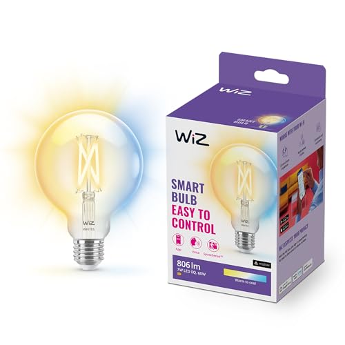 WiZ ampoule LED Connectée Wi-Fi Globe E27 Claire, Nuances de Blanc, équivalent 60W, 806 lumen, fonctionne avec Alexa, Google Assistant et Apple HomeKit