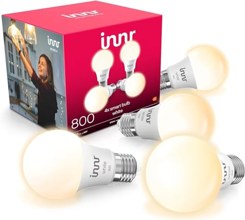 innr Ampoule Connectée Zigbee E27, Fonctionne avec Hue* et Alexa (Pont Requis), Lampe Blanc Chaud, Ampoules LED, Intensité Variable, 806 lumens - 4 pièces