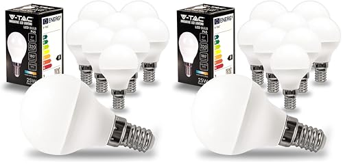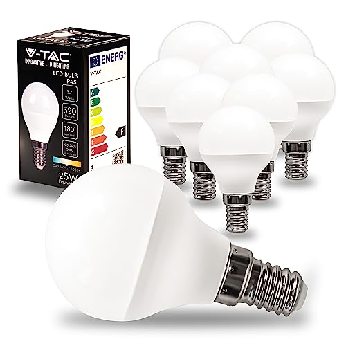 V-TAC 10x Ampoules LED culot E14 3,7W (équivalent 25W) P45-320 Lumen - 3000K Blanc Chaud - Ouverture du faisceau lumineux 180° - Ampoule Efficacité Maximale et Économie d'Énergie (Lot de 2)