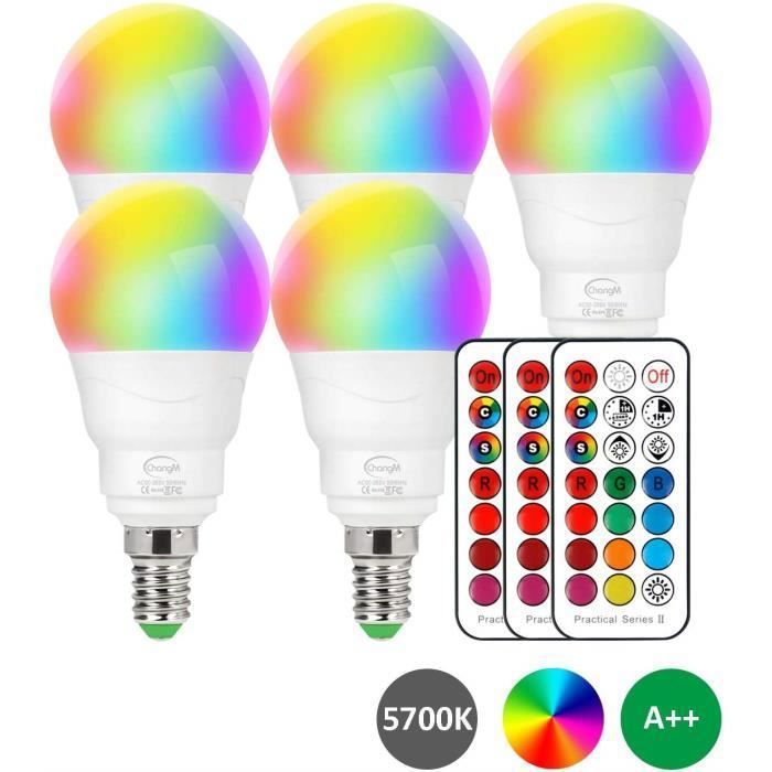 ChangM Ampoule LED dimmable E14 RGBW avec changement de couleur de 6 watts avec télécommande RGB et 5700 K Ensemble de 5 Blanc froid