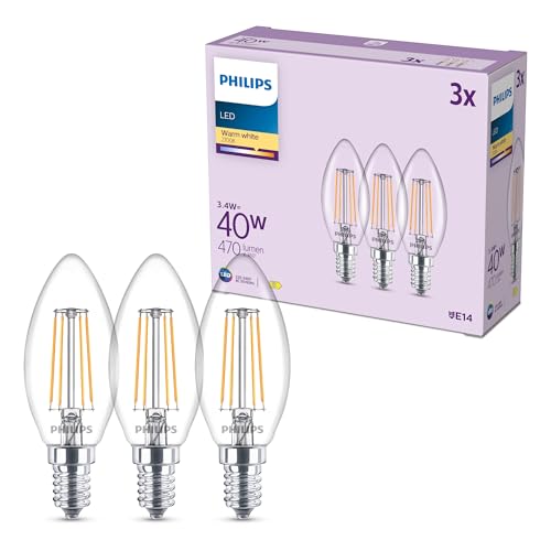 Philips Ampoule LED, Pack de 3, B35, E14, 470 Lumens, 40 W, Design Flamme, Longue Durée de Vie, Lumière Blanc Chaud 2700 K, Ampoule Transparente