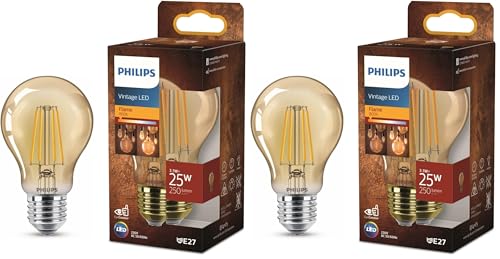Philips ampoule LED vintage ambrée, 25W, culot E27, blanc chaud 1800K, non dimmable (Lot de 2)