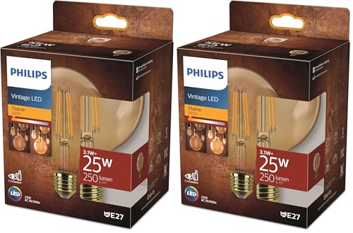 Philips ampoule LED vintage ambrée, 25W, culot E27, format globe, blanc chaud 1800K, non dimmable (Lot de 2)