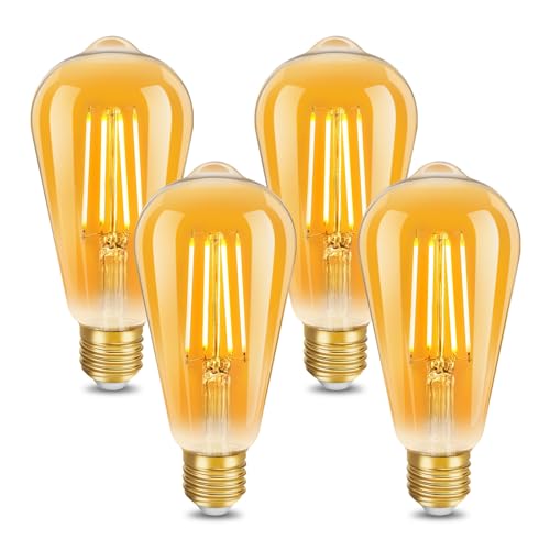 ILEEDear Ampoule E27 LED, Blanc Chaud 2200K 500LM Ampoules E27 Edison Vintage, LED E27 ST64 Décorative Rétro pour Maison Bars luminaire cuisine Restaurant, Non Dimmable, Lot de 4