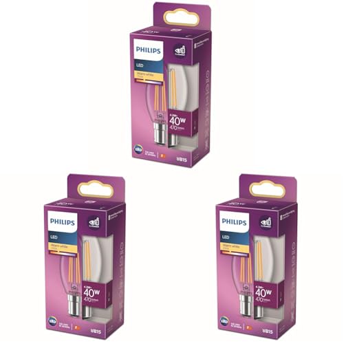 Philips ampoule LED Flamme B15 40W Blanc Chaud Claire, Verre (Lot de 3)