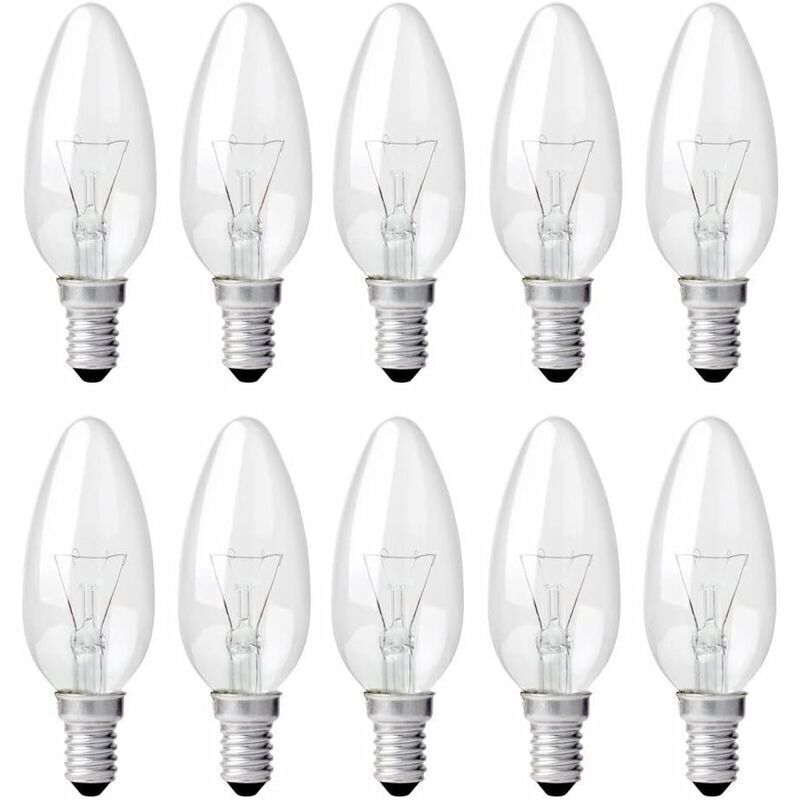 Ampoule Bougie Clair E14 40W, Ampoule Incandescence Dimmable, Blanc Chaud 2700K, 400LM, Ampoule Flamme, E14 Ampoules à bougie à vis Edison, Pack de 10