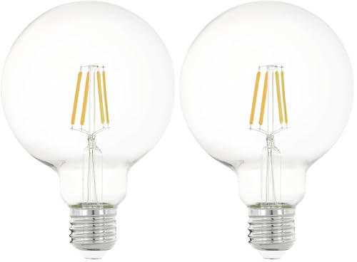 Eglo Ampoule LED globe E27, lampe classique, éclairage rétro, 4 watts (correspond à 40 watts), 470 lumens, blanc chaud, 2700 Kelvin, ampoule Edison G95, Ø 9,5 cm (Lot de 2)