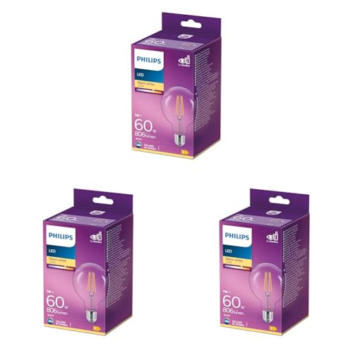 Philips Lighting Ampoule LED Globe E27 Filament 7W Equivalent 60W Claire Blanc chaud (Lot de 3)
