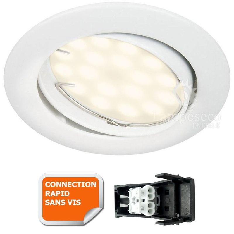 LOT DE 50 SPOT LED ENCASTRABLE ORIENTABLE BLANC AVEC AMPOULE GU10 230V eq. 50W, LUMIERE BLANC NEUTRE