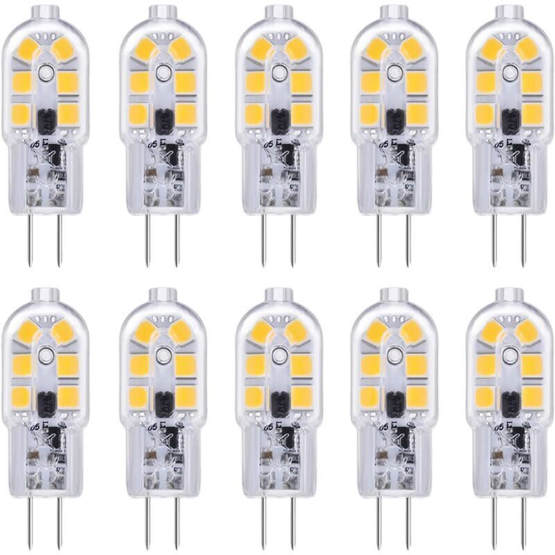 Ampoule LED G4 Lot de 10 ampoules LED G4 12 V 2 W blanc froid 6000 K, 12 LED, remplacement pour ampoule halogène G4 10 W-20 W, 200 lm, AC DC 12 V G4