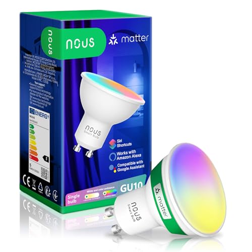 NOUS P8 Ampoule WiFi Intelligente RGB GU10, Compatible avec Matter, Alexa, Home Assistant & HomeKit, Smart Home, Télécommande, Changement de Couleur LED, Ampoule Changement de Couleur, WiFi 2.4 GHz