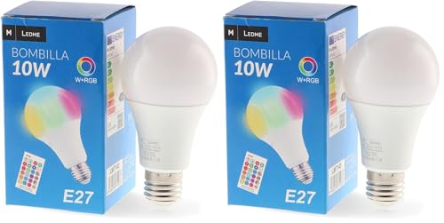 M Ledme - Ampoule LED avec Télécommande 10W (Eq. 70 W) culot E27 A60, 700 Lumens, RGBW, Dimmable en intensité, Lumière Blanche et Colorée, LM7143, Rgb+6000k (Lot de 2)