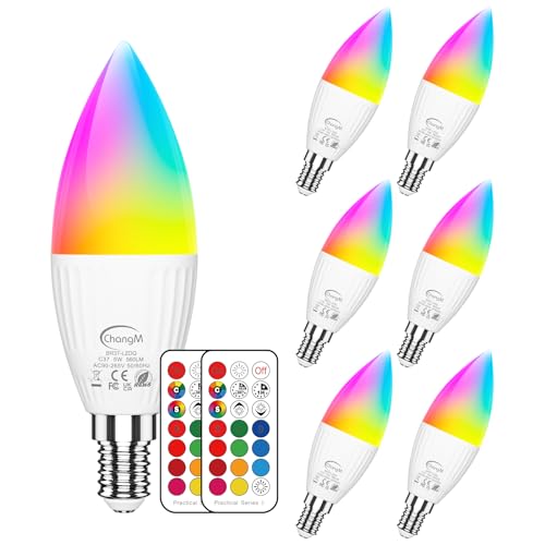 Ampoules LED E14 RGB, Ampoule LED en Forme de Bougie, 5 W (Remplace 40 W), Led Couleur Changement de Couleur Dimmable, Blanc Froid 5700 K, Avec Télécommande, Lot de 6
