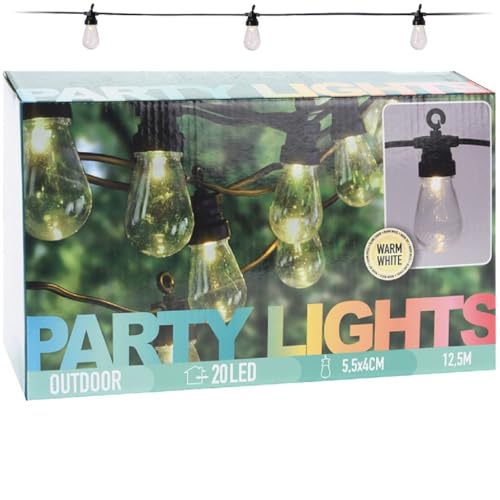 Self Import Agencies ECLAIRAGE FÊTE EXTERIEUR, 20 AMPOULES 5.5X4CM, CHAQUE AMPOULE 1 LED BLANC CHAUD - LONGUEUR TOTALE 9.5 METRES + 3 METRES FIL CONDUCTEUR, ADAPTATEUR IP44 INCLUS