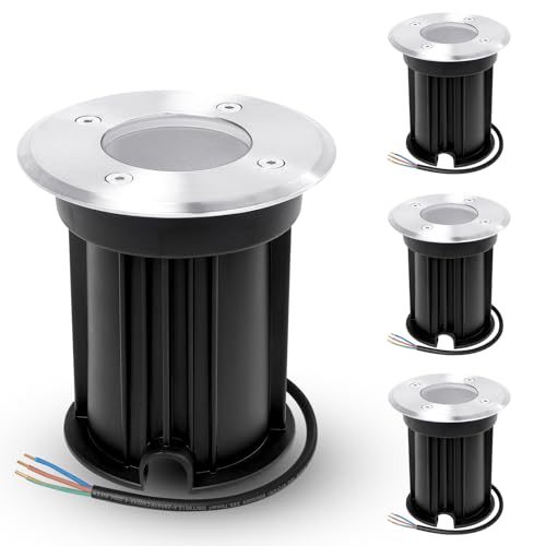 YindaLux 4x Spot Encastrable Exterieur au sol pour GU10 203V, IP67 Étanche Spot LED Encastrable Exterieur pour terrasse, jardin, trottoir, terrasse, allée, pelouse, Rond, Argent (sans ampoule)