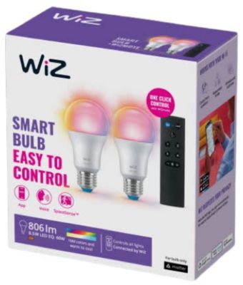 Ampoule LED connectée WIZ Kit E27 60W x2 + télécommande